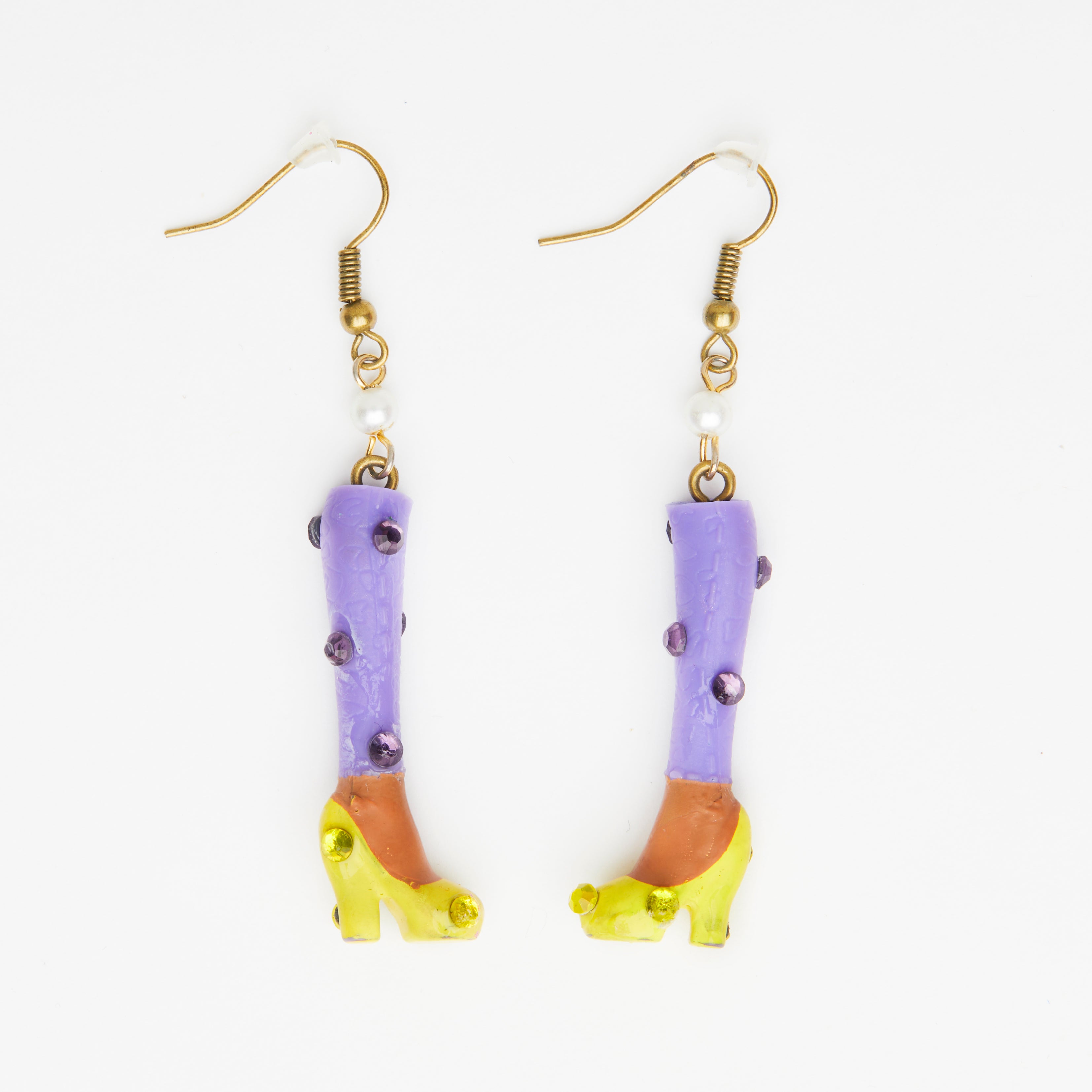purple legs & miniature doll yellow shoes earrings