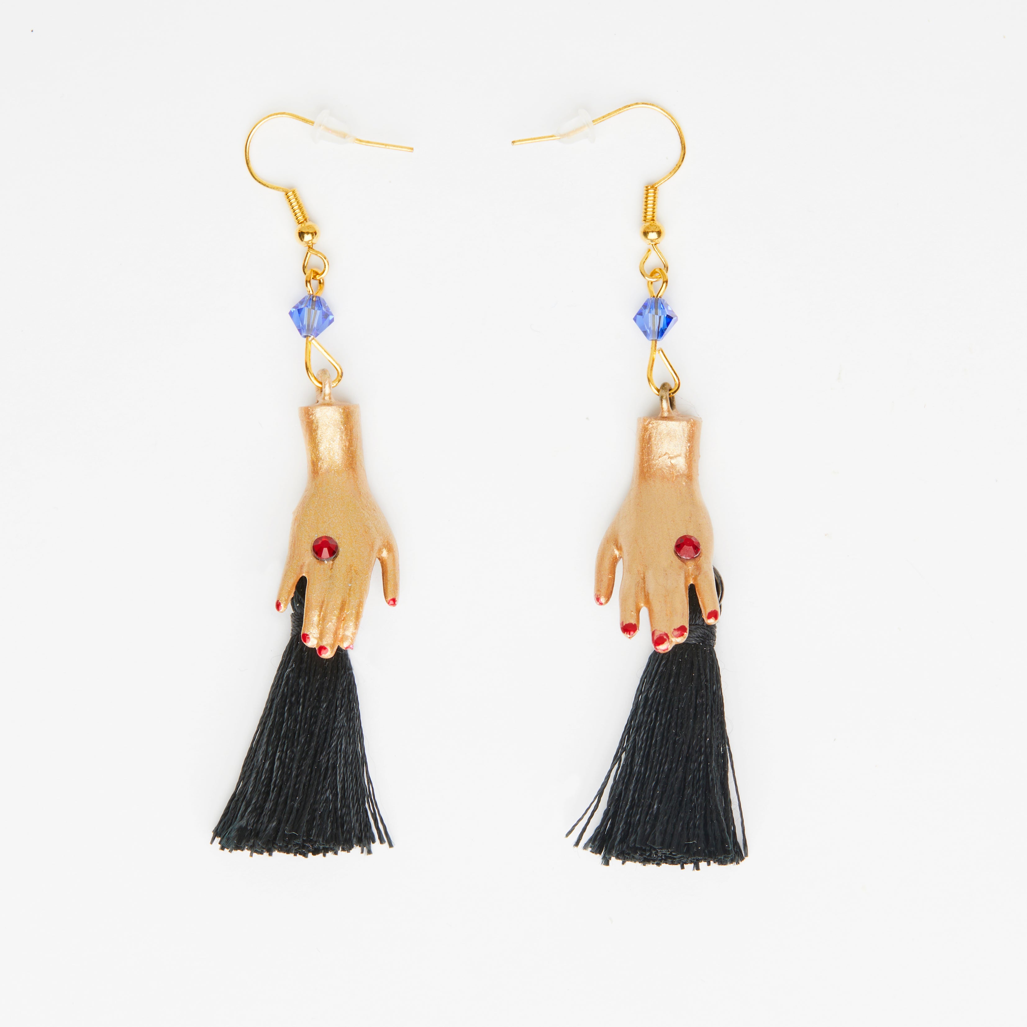 gold dolls hands earrings & black tassels