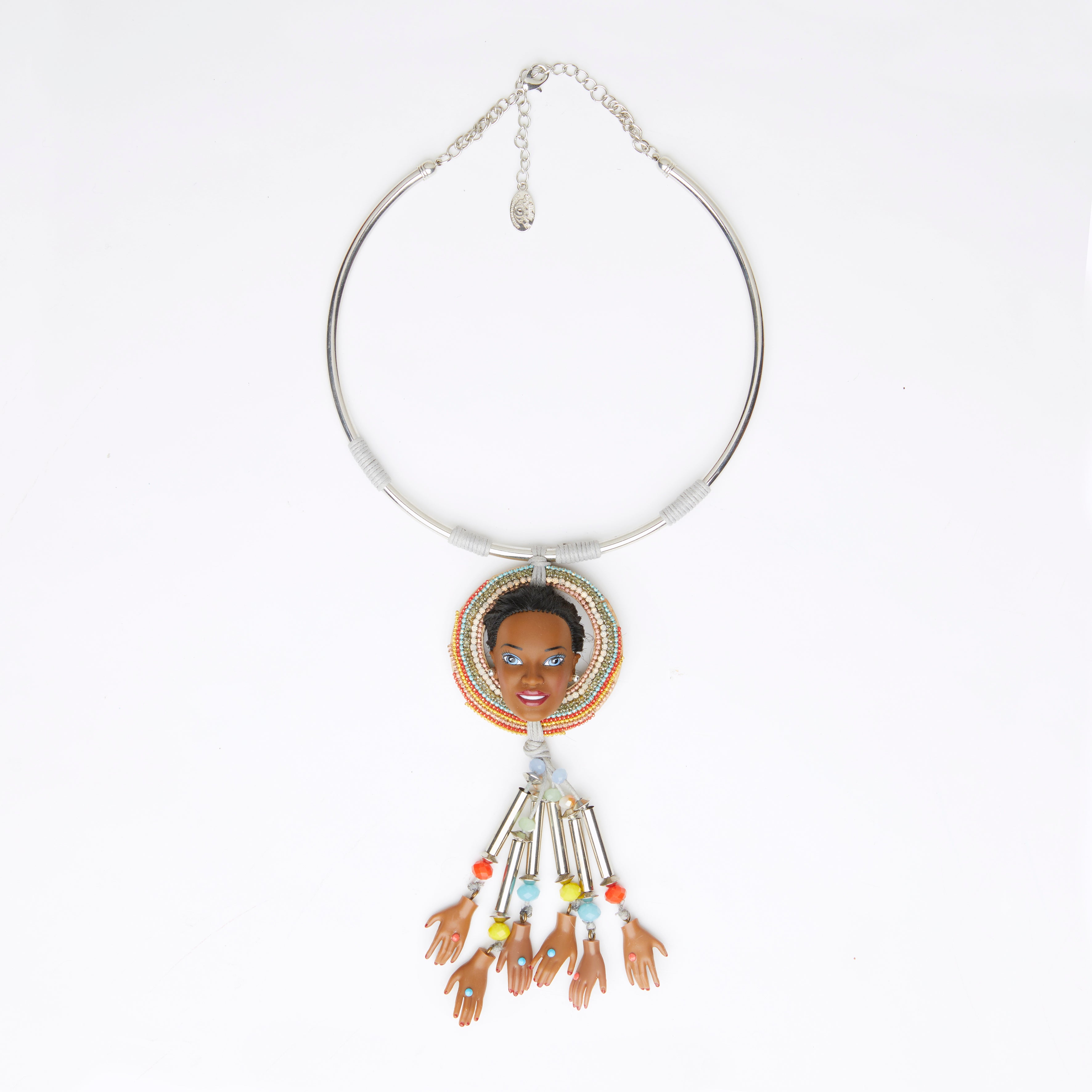 black doll face necklace with hands