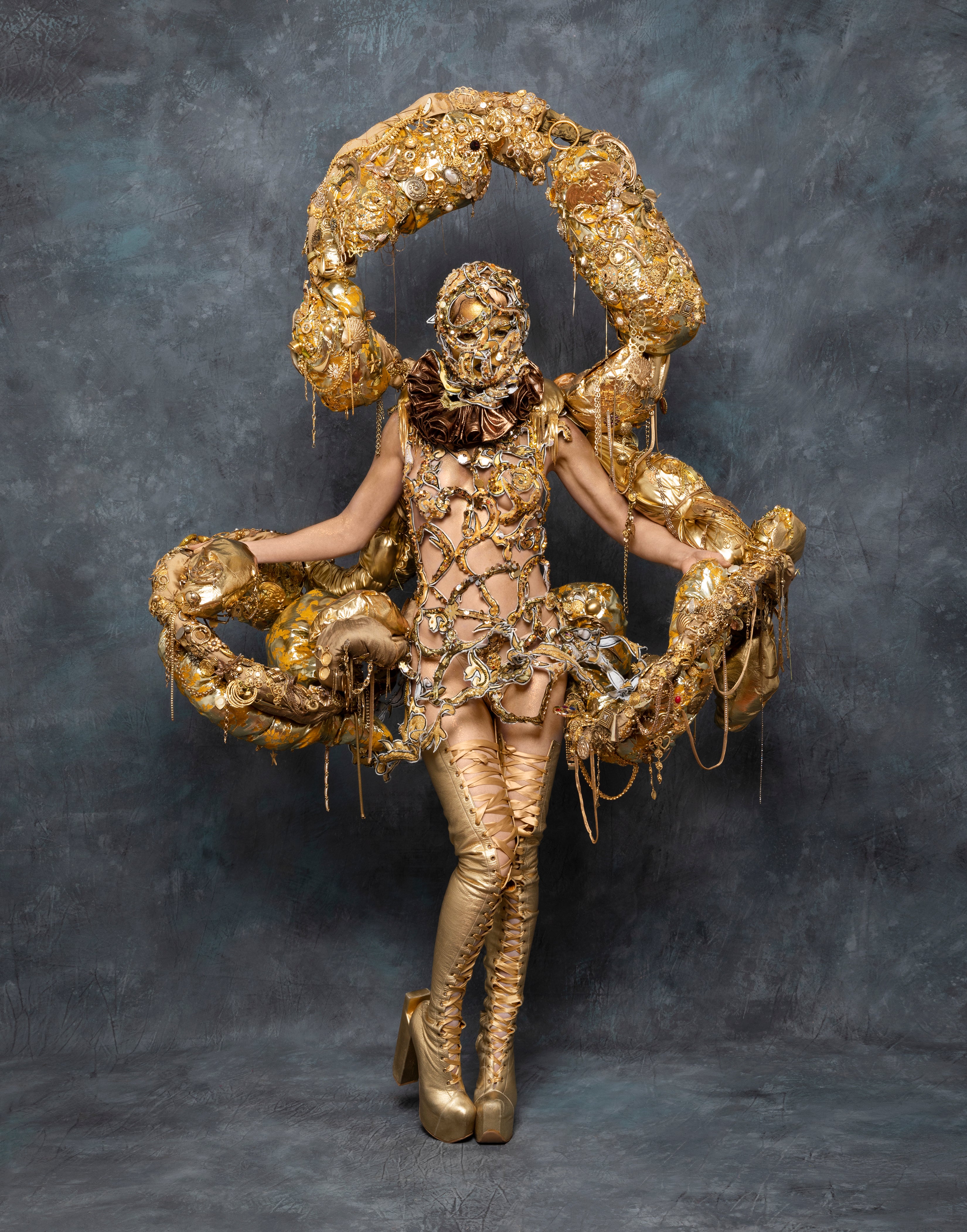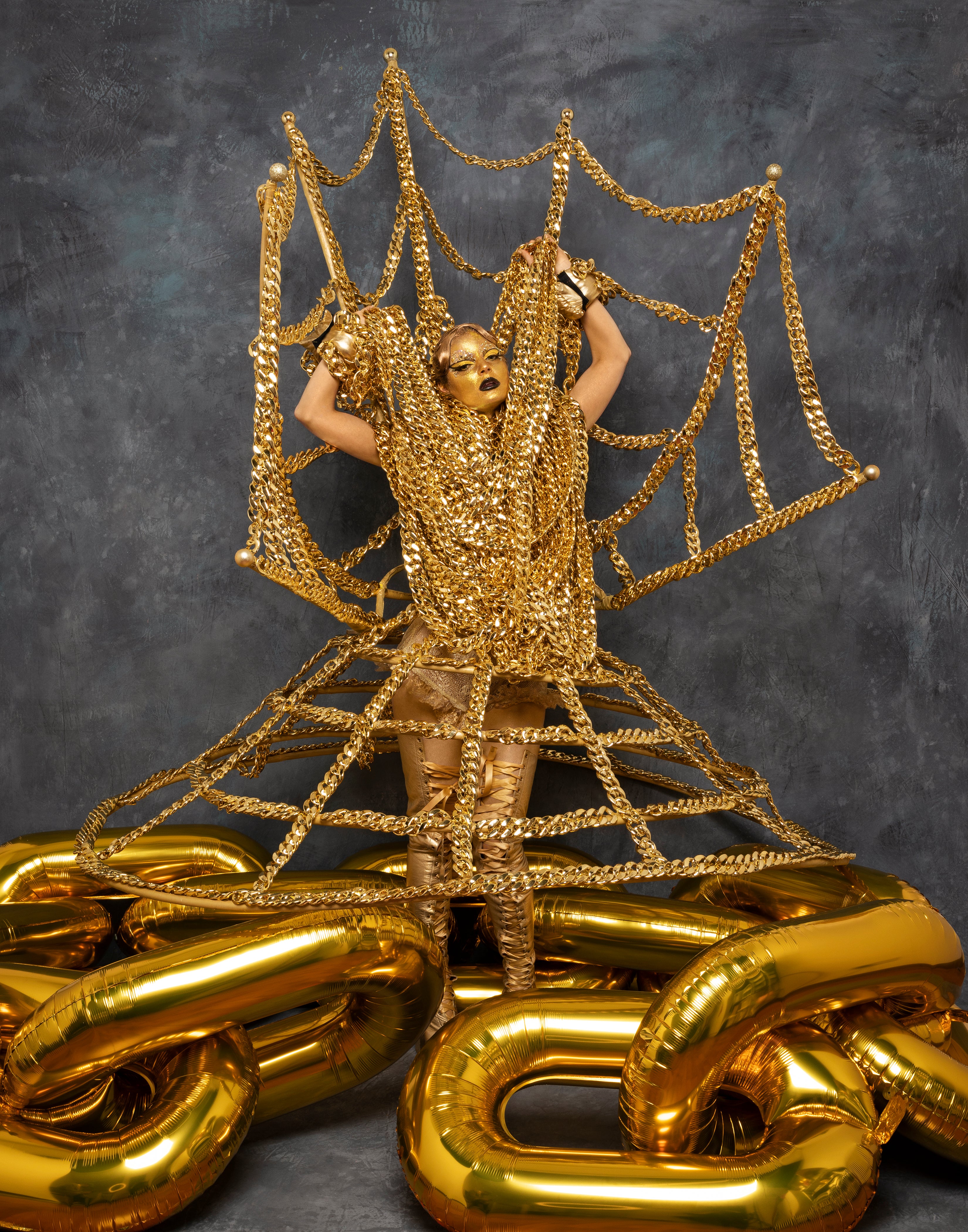 Alternative miss world 2022 -Evening wear look Gold chains costume - Print